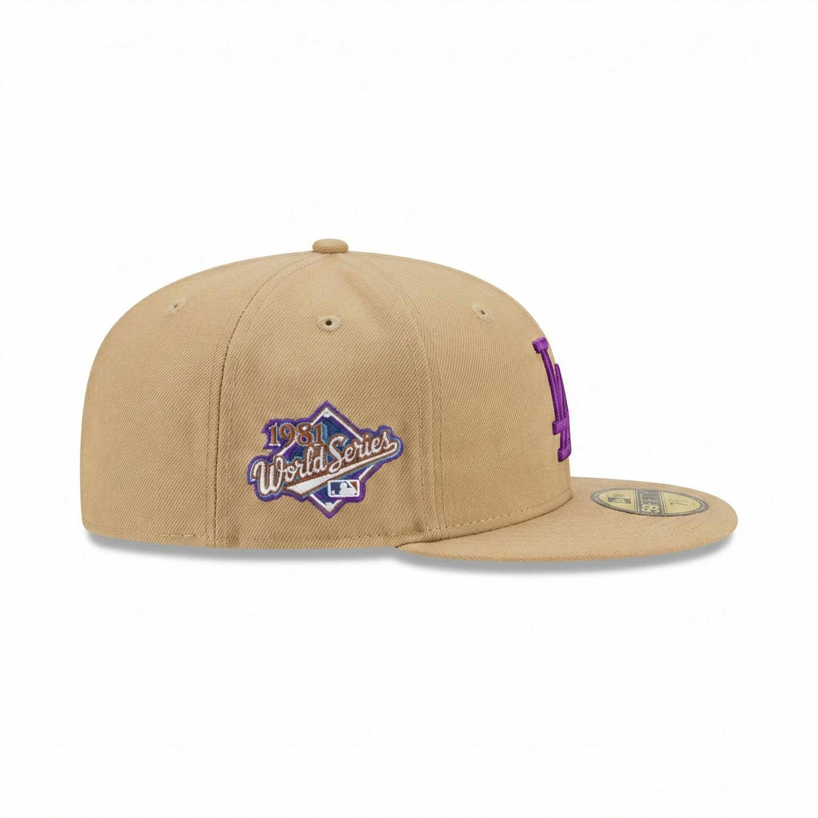La gorra New Era 59FIFTY LA Dodgers World Series 1981 en color Camel (Beige) es la definición de “Streetwear de Lujo”. Esta pieza exclusiva se aleja del azul tradicional para ofrecer una combinación de colores sofisticada y única: una base neutra tierra con acentos en morado eléctrico que rinden homenaje al campeonato del 81.