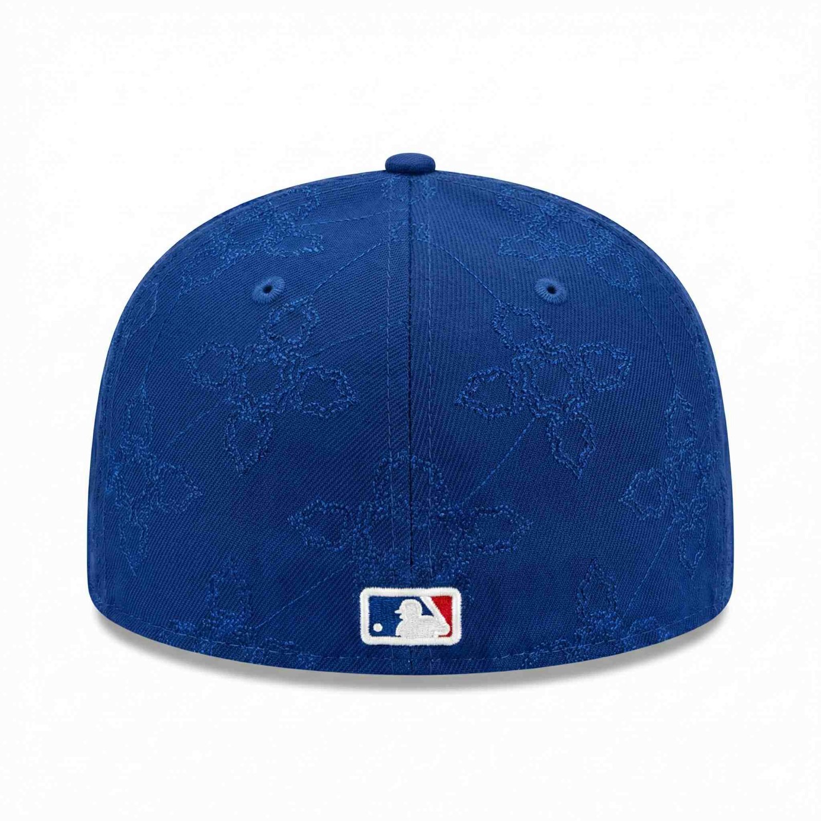 Diseño All-Over Pattern: El verdadero lujo está en los detalles. Toda la corona de la gorra presenta un intrincado patrón bordado (estilo monograma o floral geométrico) en el mismo tono azul rey. Un efecto visual de textura que se nota al acercarse y brilla sutilmente con la luz.