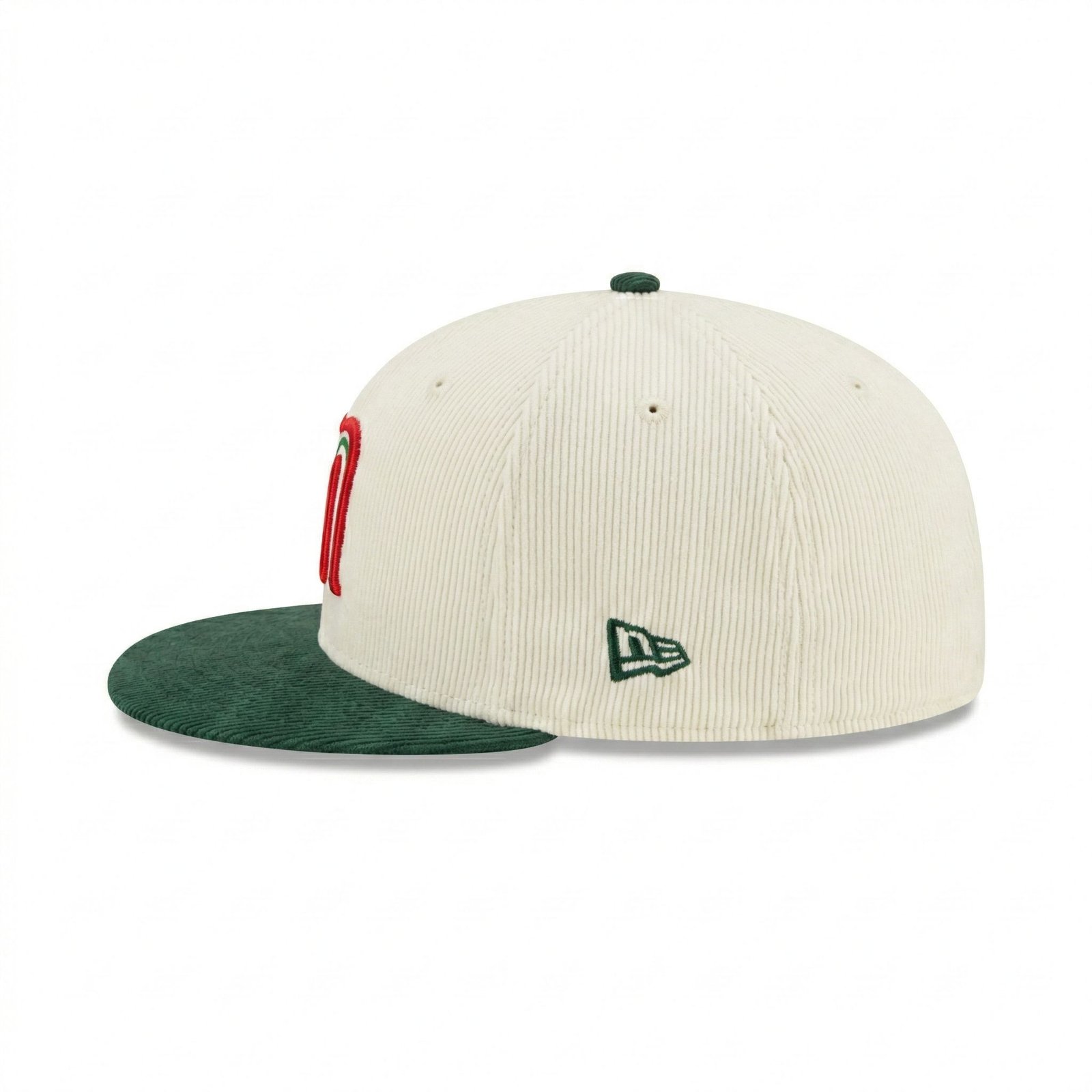 • Textura Premium de Pana: Tanto la corona como la visera están confeccionadas en tela de pana (corduroy) de alta calidad. El color beige de la corona y el verde bosque de la visera crean un contraste orgánico y elegante.